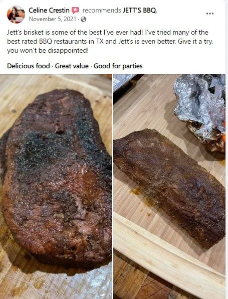 Check out our customer photos and reviews below! Share your pictures with us on Facebook or email them to jettsbbq@gmail.com.